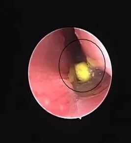 (图:鼻腔异物——4岁小男孩由于好奇将黄色珠子塞进右鼻孔,导致异物卡在鼻腔)