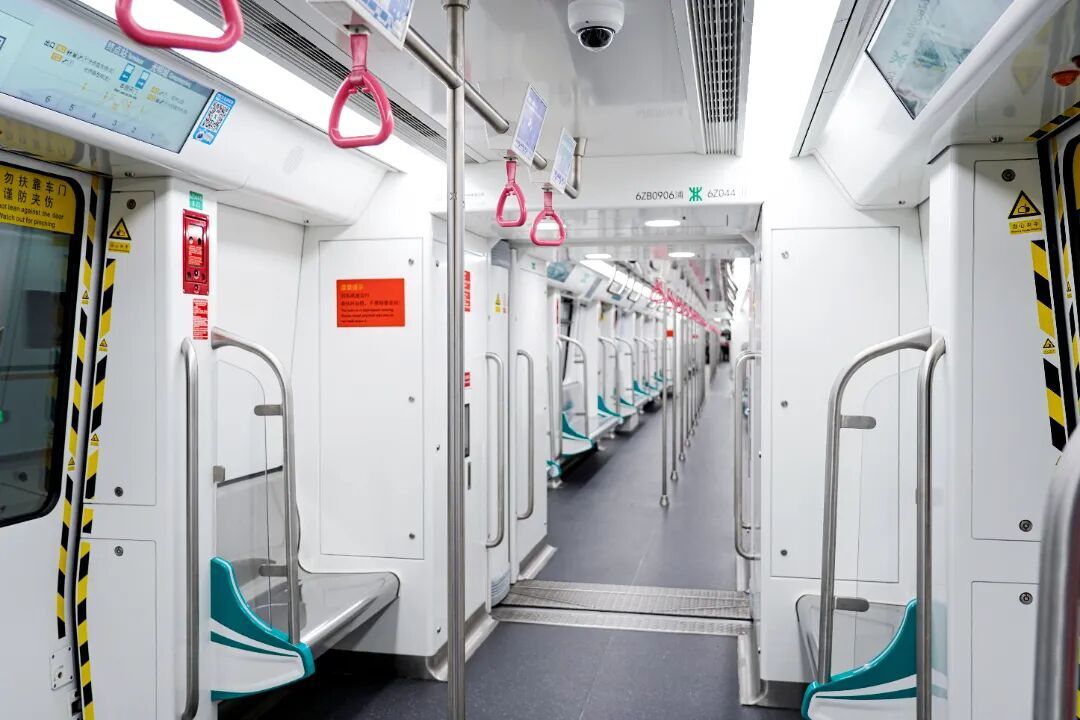 此外,列车充分体现绿色环保理念,采用永磁牵引系统驱动,相较传统异步牵引系统节能20%至30%,具备高效节能、低碳环保、响应快速及维护简便等优势。轻量化设计使列车较同类型车辆减重3至4吨,助力节能减排。在乘车体验上,列车优化气密性和防噪设计,铺设阻尼层并在车体侧墙加装隔音材料,有效降低客室噪音,为乘客营造更加安静、舒适的出行环境。