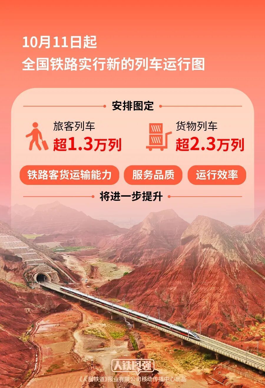 10月11日起,全国铁路实行新的列车运行图,保持客货列车开行规模科创之星,优化列车开行结构,安排图定旅客列车超1.3万列,货物列车超2.3万列,铁路客货运输能力、服务品质和运行效率将进一步提升。